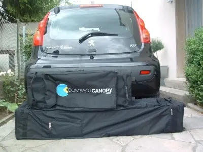 Compact Canopy mit dem 1m Packmaß ist schon gar nicht mehr so unbekannt. Durch das kleine Packmaß passt dieser stabile Rahmen sogar quer in den Kofferraum.